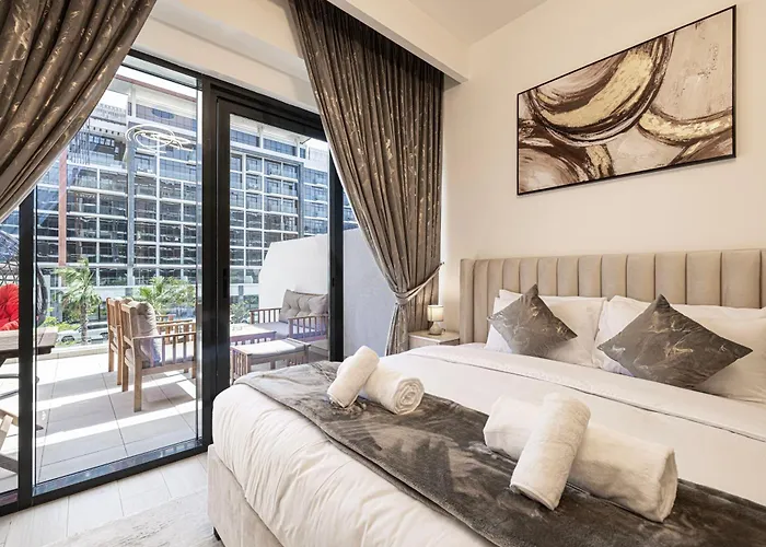 The apartment lies around a 10-minute ride from Dubai Ice Rink. Burj Khalifa is 10 minutes' drive from the property.